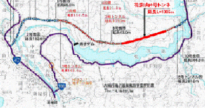 鳴子ダム(荒尾湖)東側の鳴子ダム事務所前を通るあの狭路を避け、湖の西側を開拓したということですね。昭和63年に着工し幾度もの苦労を重ねやっと完成です。