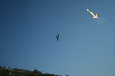 矢印の先っちょの部分がその埃と思われる影響。オーブでは無い。