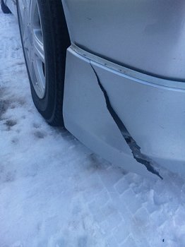 えぇ、マチコさんSRのフロントスポイラーが割れました。