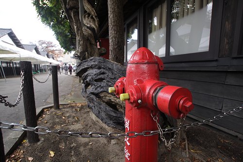山居倉庫。川に面した側はなんか祭りの準備中みたいで情緒もヘッタクレもありませぬ。