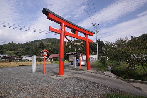 田んぼの中にそそり立つ真っ赤な鳥居に心を奪われました。工業団地からちょっと北のあたりです。