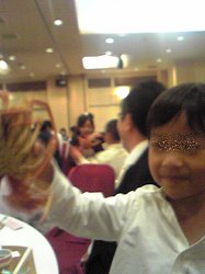 突然、親族関係のお子さんが「えびー!」ってハシャギながら酔っ払いオッサンテーブルに遊びにきました(笑)勇気有る少年だ。せっかくなので記念撮影をば(笑)