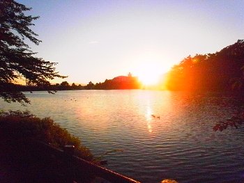 水面に映る夕焼けがとても綺麗でした。撮影はコンデジで。