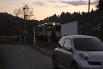 JR北上線、平石駅にて。汽車を写したいのか、愛車を写したいのか、意味不明な写真。いわゆる構図の失敗作w