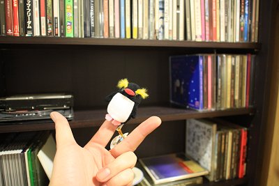 イワトビペンギンの指人形です。どーだ、この意味不明な衝動買い。