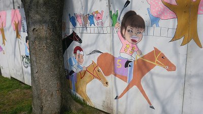 木に隠れて写ってませんが、3番手は村上忍さんな勝負服でした。