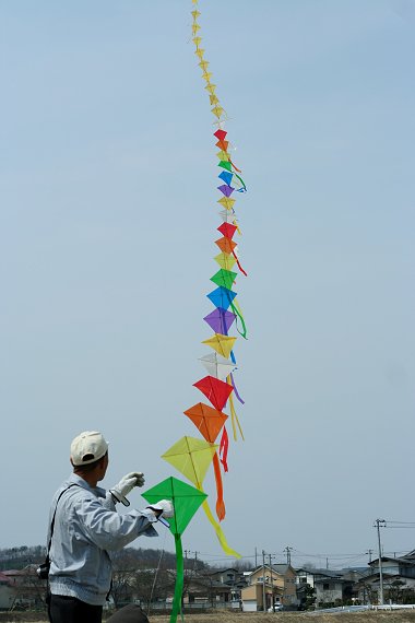 県北から御参加の「まなぐ凧保存会」の方々は、風を捕まえられずに苦労していたご様子で。