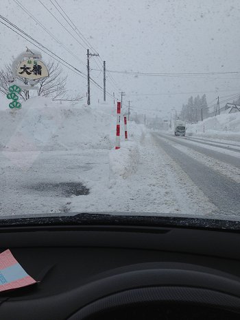 睡魔と闘いながら延々と東北道を北上。奥羽山脈を越えたとたんに吹雪。