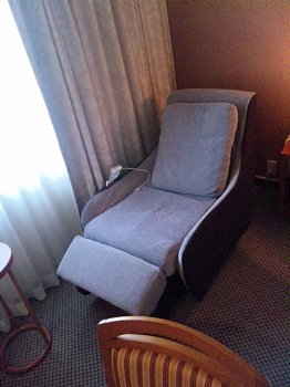 宿泊先にて。500円ほど高い部屋にしたらマッサージチェアが設置されておりました。次からもここにしよう。