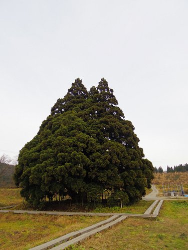 11/24、山形県鮭川村「小杉の大杉」です。ネーミングは大きいのか小さいのか分からないのですが通称「トトロの木」だそうです。