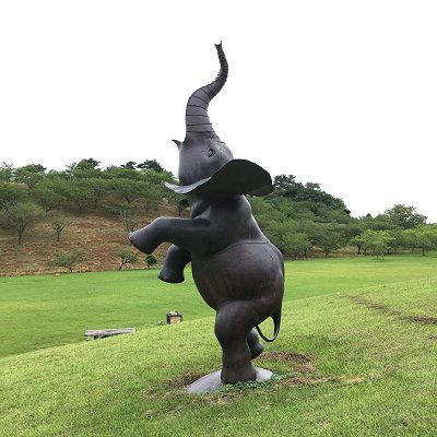 7月上旬:井川町の日本国花苑。象の像って勝手に命名してましたが、正しくは「雲に乗れたら」ってタイトルでした