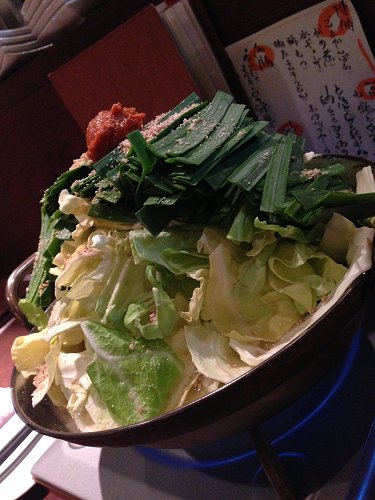 4月11日:秋田市内 博多どろんけん にてプチ宴会。写真はモツ鍋でございます。旨いの一言。そして〆のチャンポン麺も抜群に旨い。