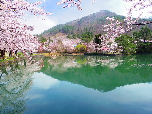 4月22日:横手市増田、真人公園。この沼があの有名なタライ漕ぎ大会の会場です。。。水汚い。。。^^;