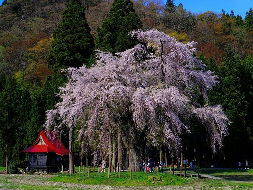 4月26日:湯沢市横堀の おしら様の枝垂桜 でございます。