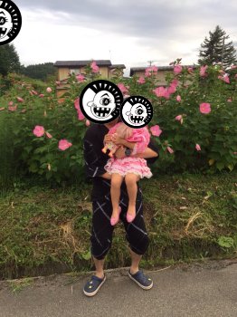 8月13日:従姉妹姪のAちゃんとツーショット ヽ(。・ω・)ノ 一応、顔隠す。1年ぶりのご対面でテンションあがった。かわいすぎてー、オジサンメロメロ^^;