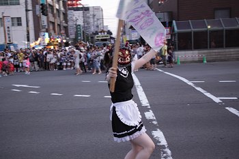 竿燈入場前の市民参加パレード。メイドコスに鬼の面。これは「有り」です(笑)