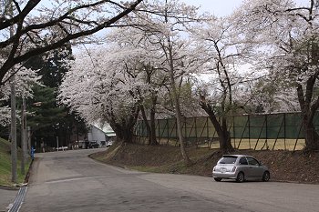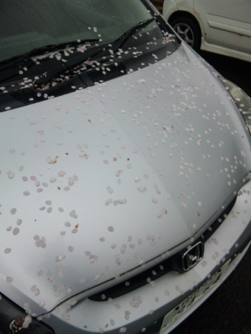 桜の花びらまみれ車。
